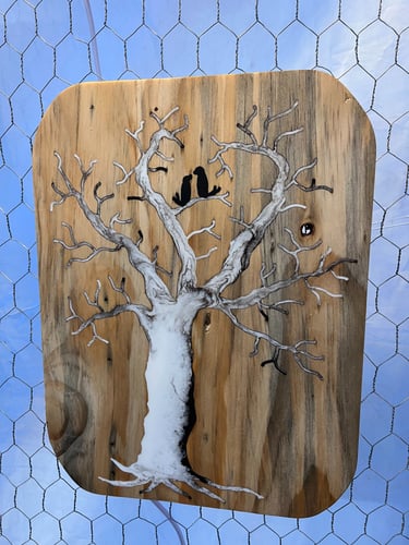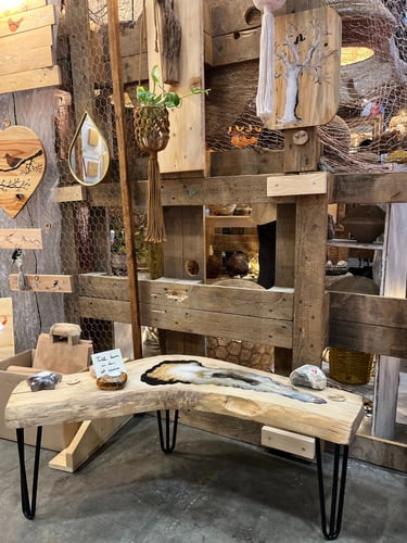 Galerie de créations et décorations en bois de récupération et résine époxy